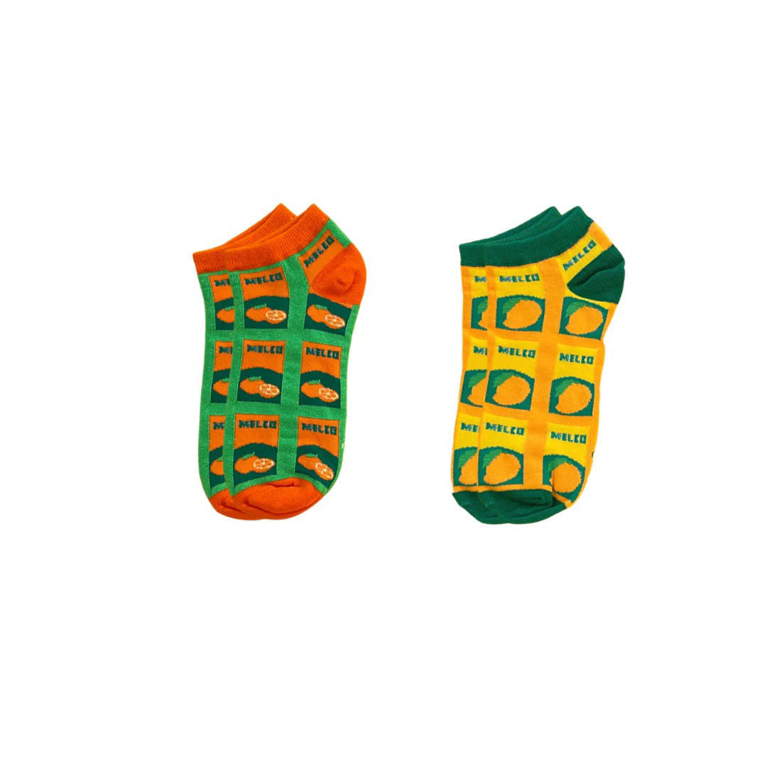 Pack Melco. This bundle includes a pair of branded socks featuring vibrant designs from Melco Orange and Melco Mango. Made from high-quality materials, these socks are not only stylish, but incredibly durable and supportive. Perfect for everyday wear or special occasions, the 2-Pack Melco adds a touch of fun to any outfit.