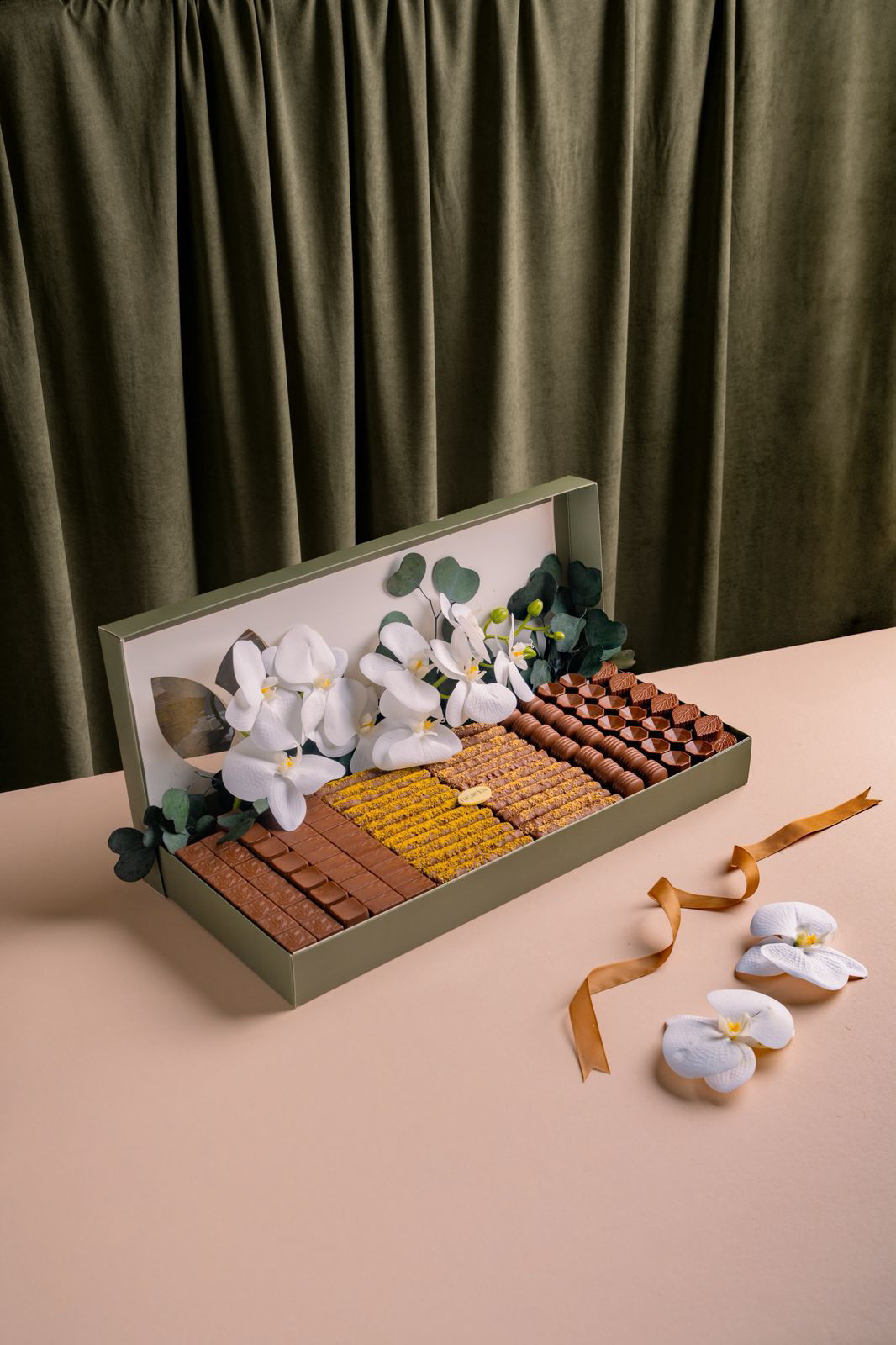 Chocolate box decorated with flowers