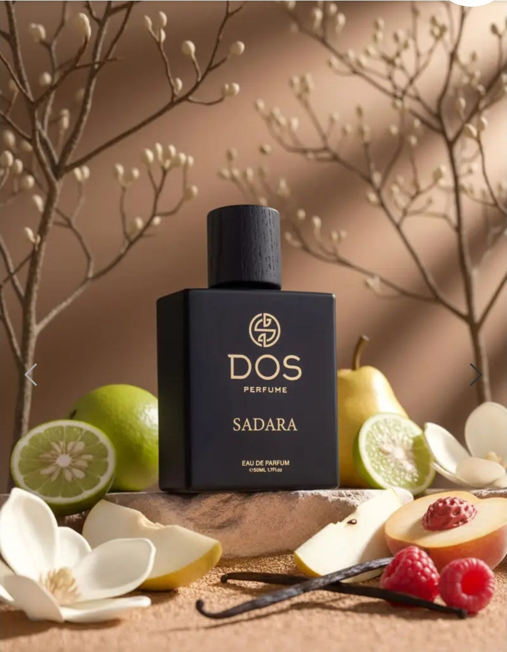Floral, warm, creamy base. Tangy bergamot, juicy pear and raspberry are combined with soft peaches, freesia and magnolia, and settle on a comfortable base of white musk, vanilla and sandalwood.