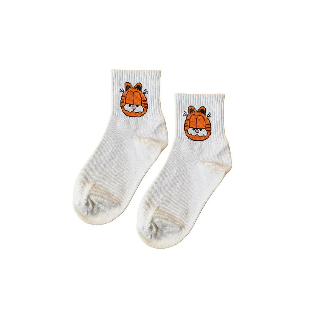 Bring some fun to your wardrobe with these Garfield socks! Featuring the classic Garfield figure, these soft white mid-cut round socks are a perfect fit for unisex fashion. Put a smile on your feet! Materials • 86% cotton • 12% Polyamide • 2% Elastin Dimensions •