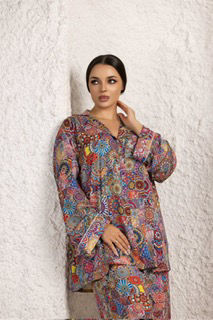 A travel suit consisting of a shirt and pants Italian silk Anjaro is cool and suitable for summer wearÂ